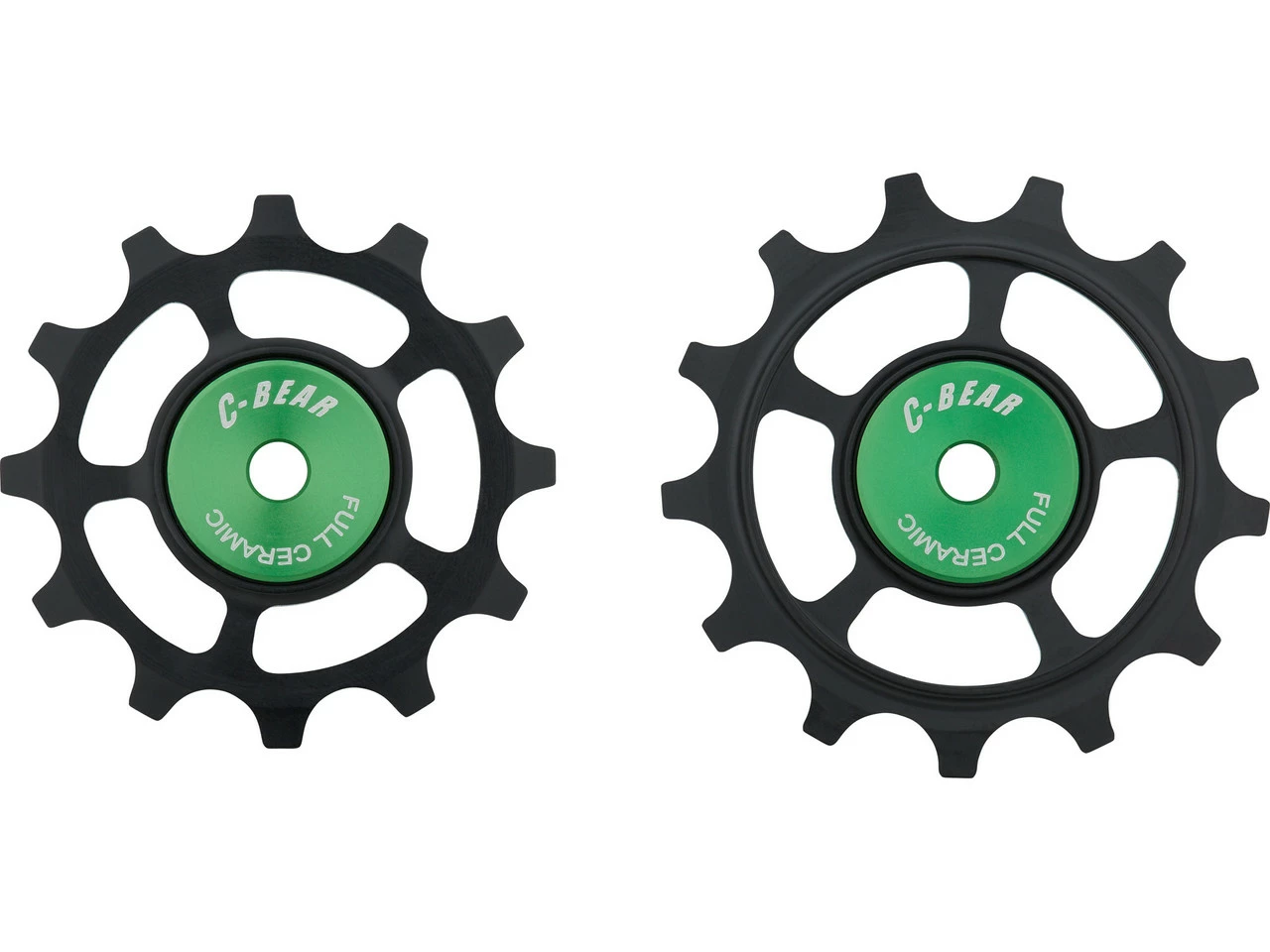 Les galets de dérailleur C-BEAR OCM Full Ceramic pour le dérailleur arrière Shimano Dura-Ace R9250 à 12 vitesses fonctionnent avec des billes de roulement en céramique qui se déplacent dans des rainures en céramique. Ils sont plus grands que les galets de dérailleur originaux. Cela augmente considérablement les performances de ta ttransmission.