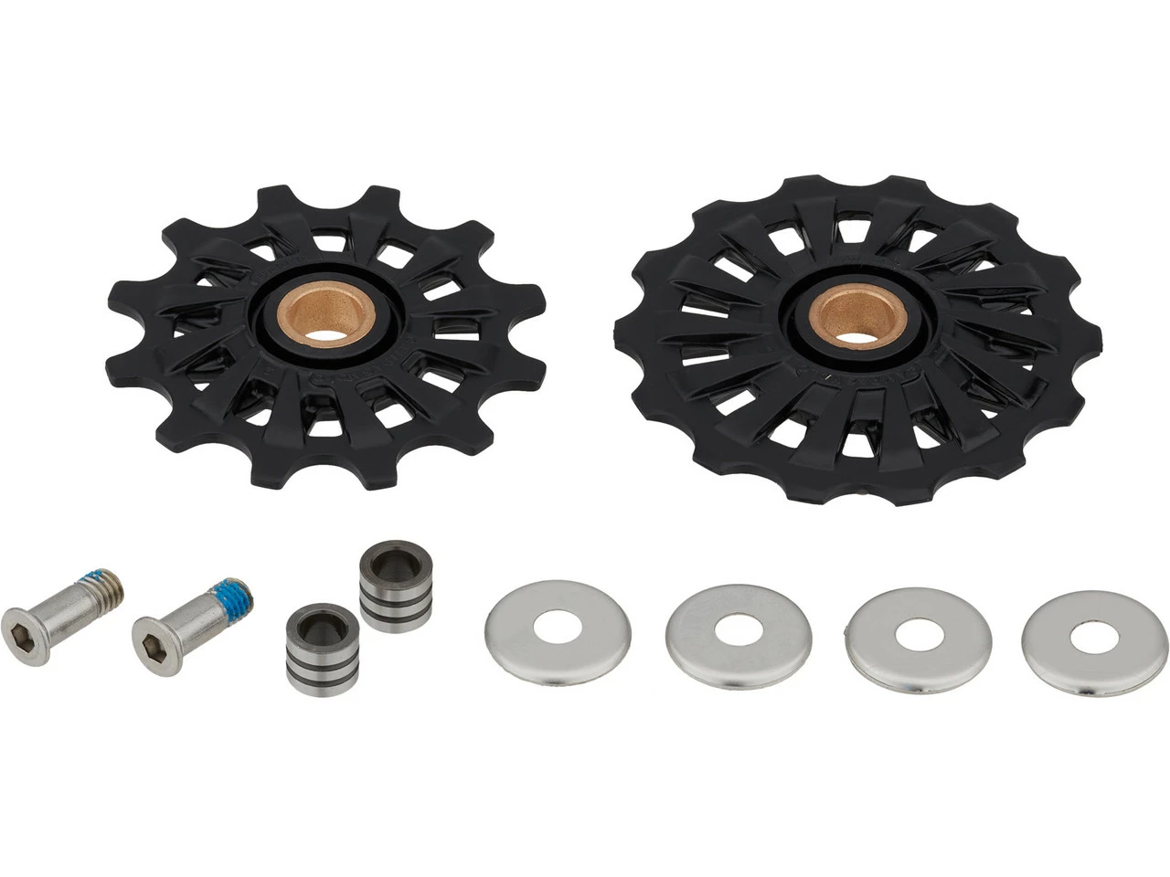 Contenu :1 paire de galets de dérailleur Campagnolo Ekar (haut et bas)4 x cache-roulements2 x vis