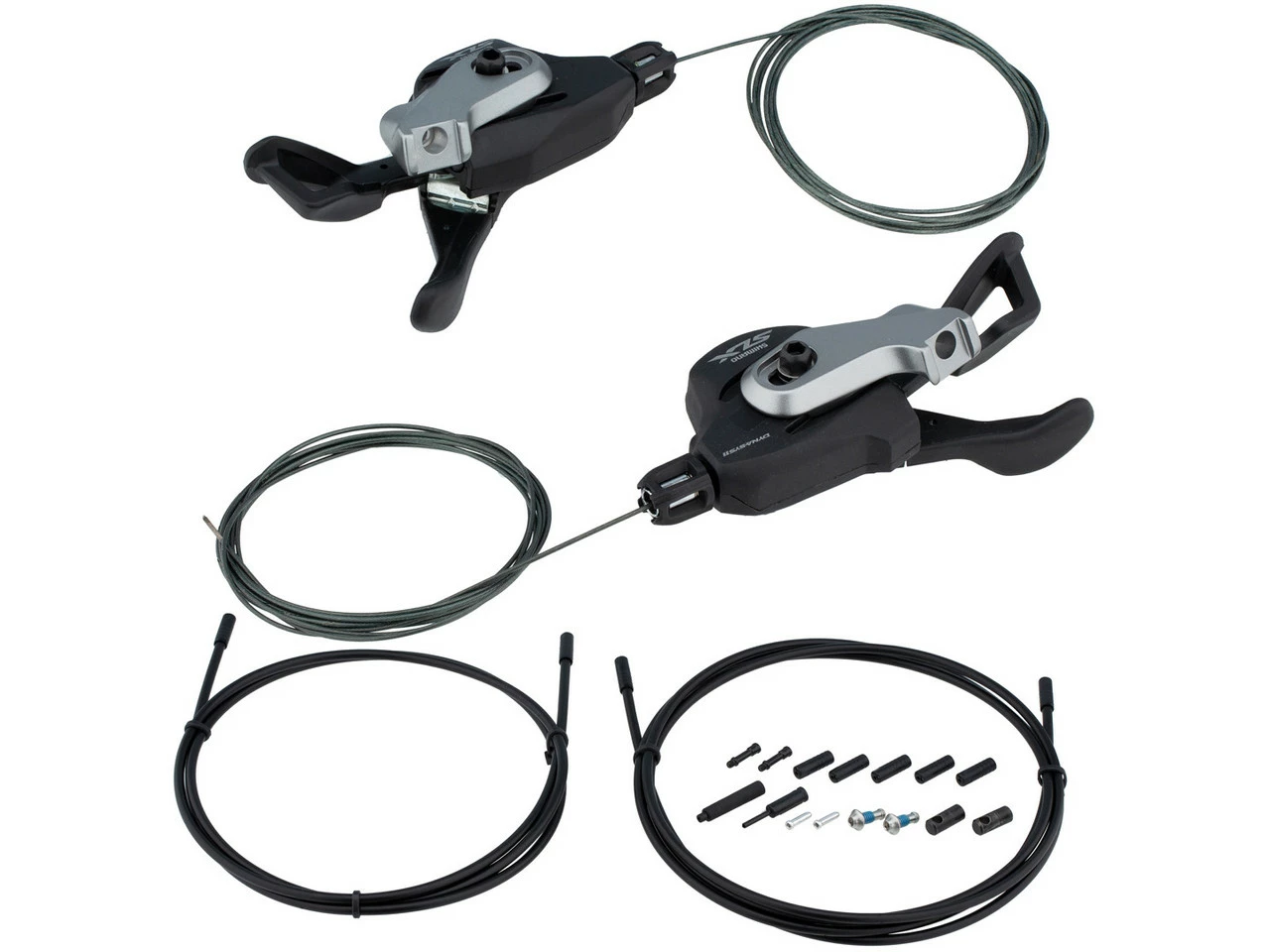 Contenu :1 paire de leviers de vitesses Shimano SLX SL-M7000-B-I1 x câble Shimano 1800 mm1 x câble Shimano 2050 mm1 x gaine de câble Shimano 1320 mm1 x gaine de câble Shimano 1880 mm5 x capuchons scellés Shimano de 6 mm1 x capuchon rallongé Shimano