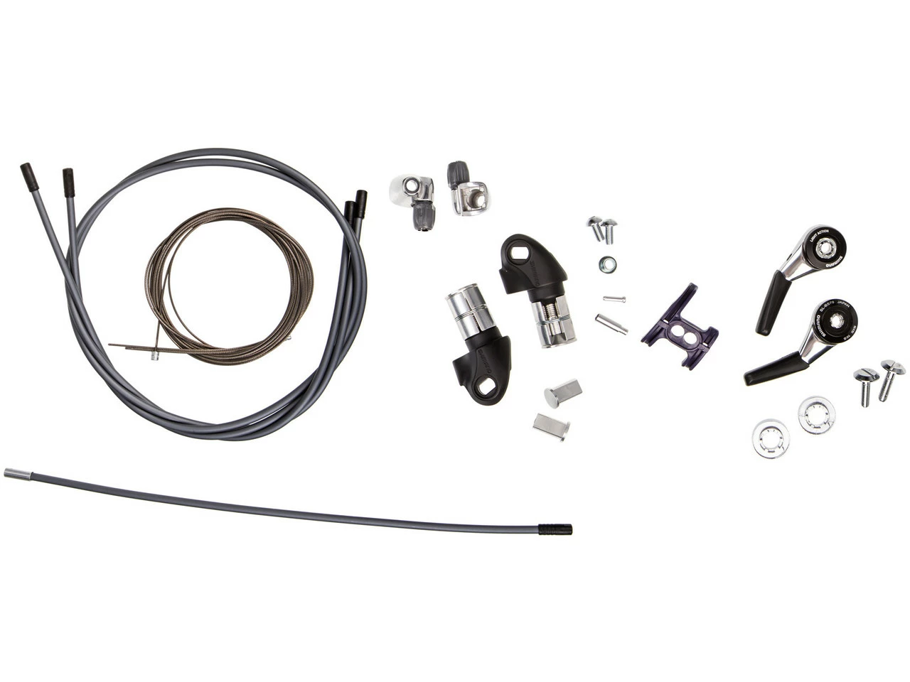 Contenu :1 paire de leviers de vitesses Shimano Dura-Ace SL-BS791 pair d’appuis pour cadre Shimano SM-CS501 x câble Shimano 2600 mm1 x câble Shimano 2000 mm2 x gaines de câble Shimano SP41 800 mm1 x gaine de câble Shimano SP41 (scellée) 300 mm